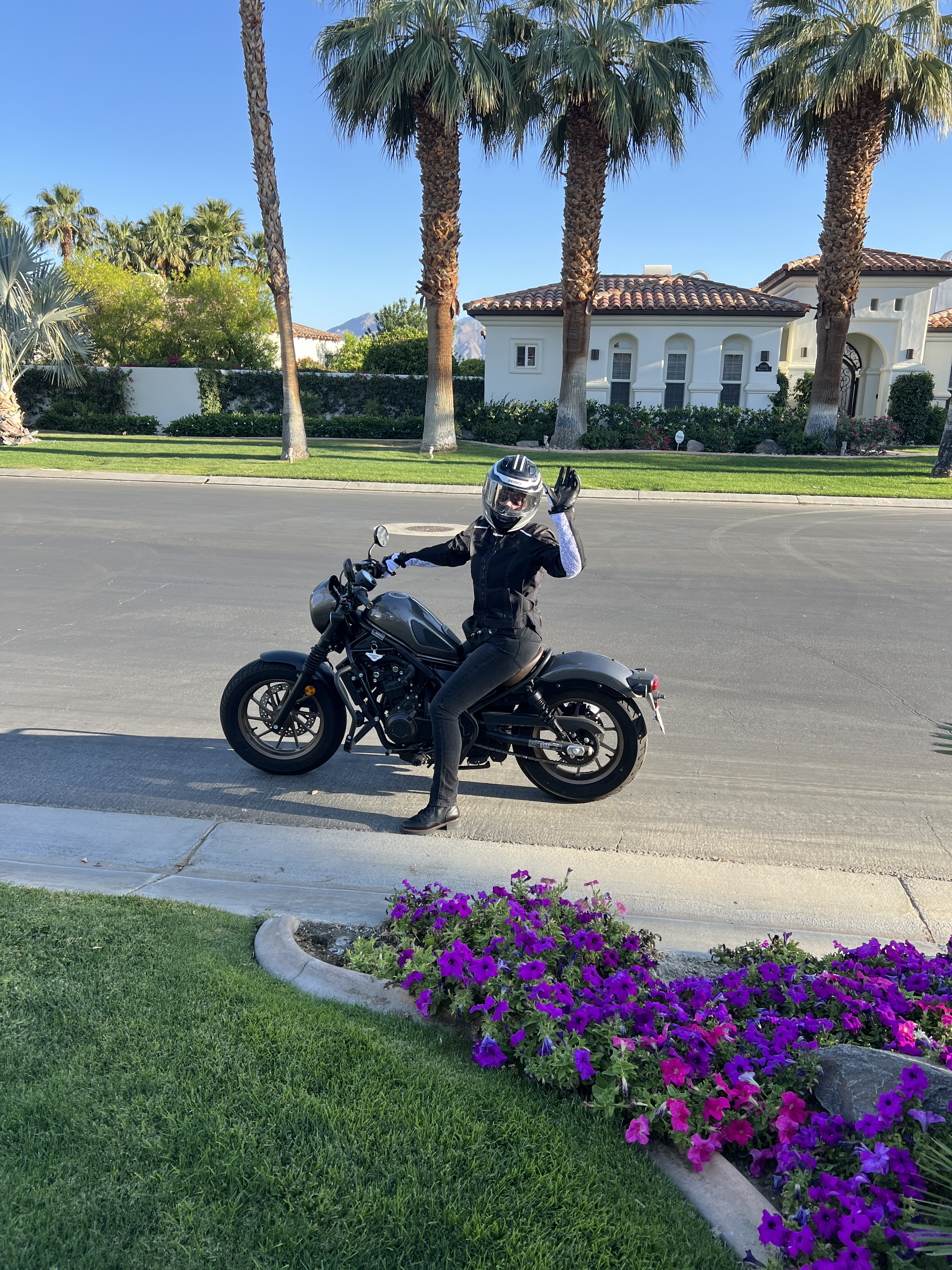 She took a motorcycle safety course, got her license, bought a bike (Honda Rebel 500), and is learning how to ride it.