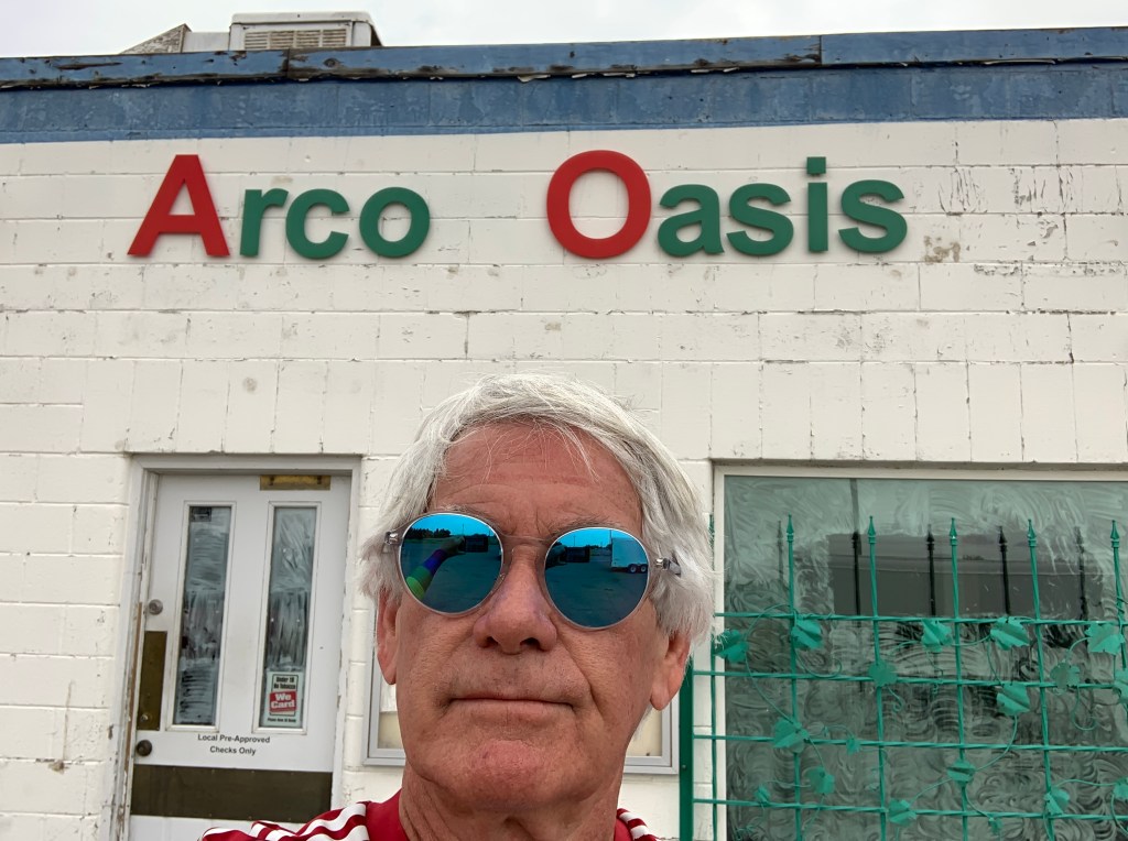 In Baker, home of the world’s tallest thermometer. Today, as we roll through Baker, it’s 97 degrees.