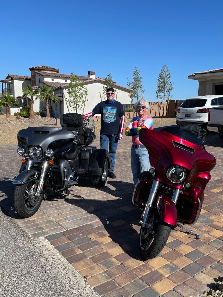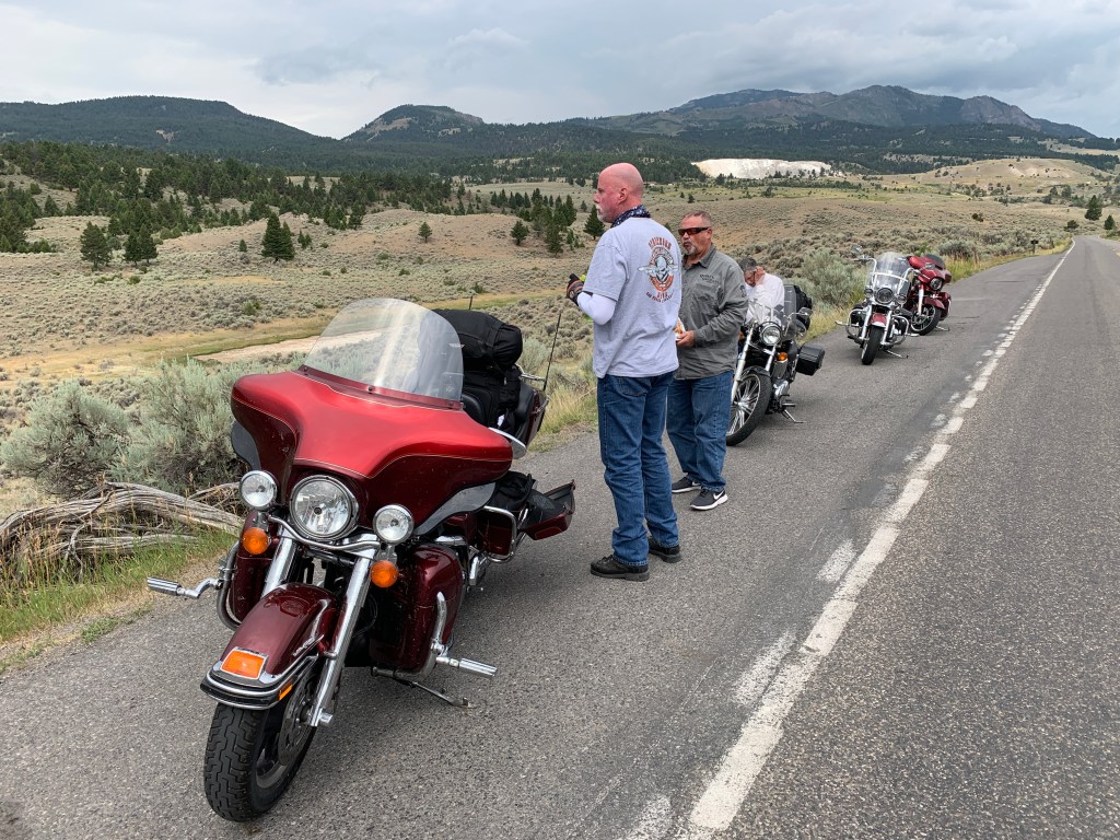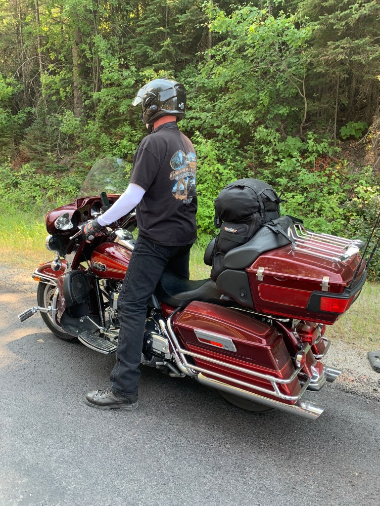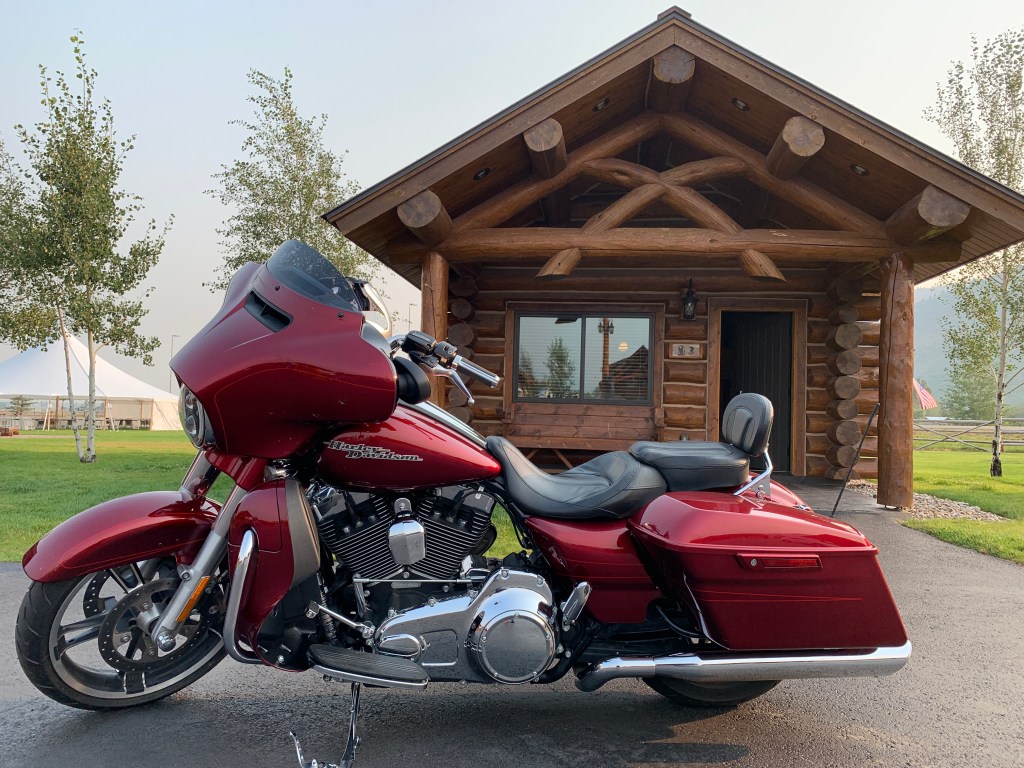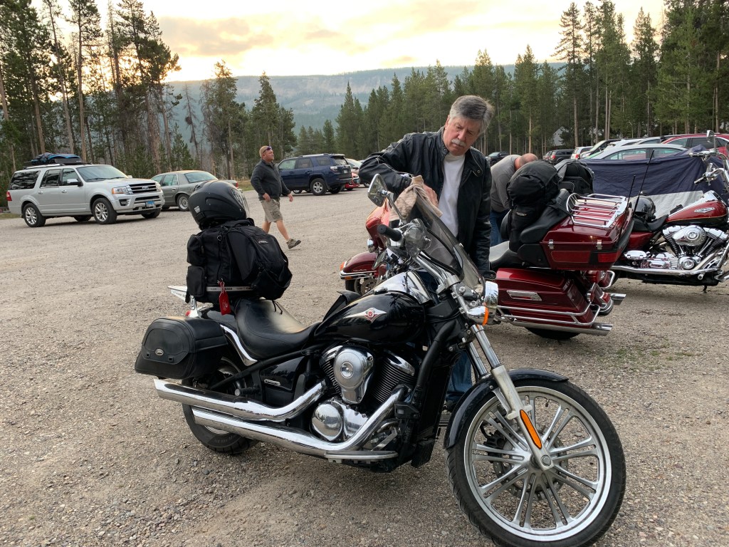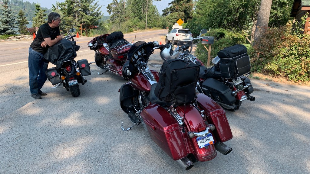 Two Harley studs, ready for three weeks on the road. The bikes won’t be this clean again till we get home.