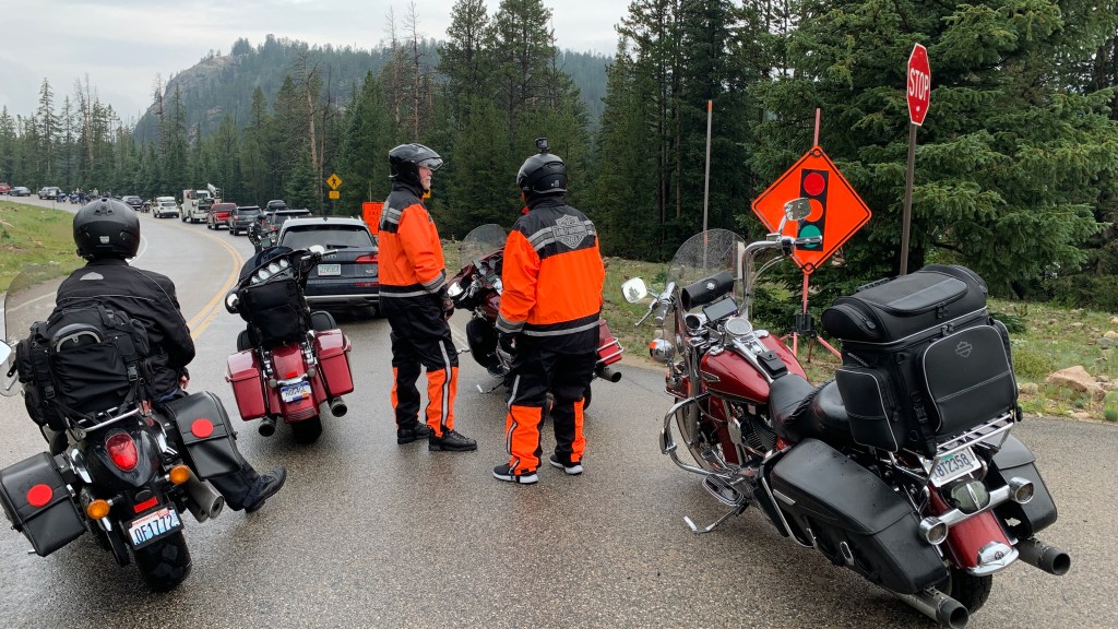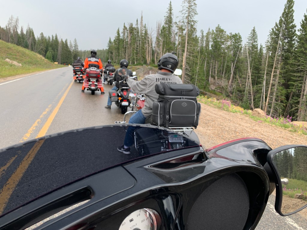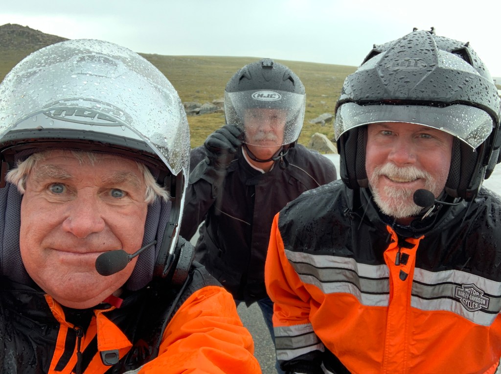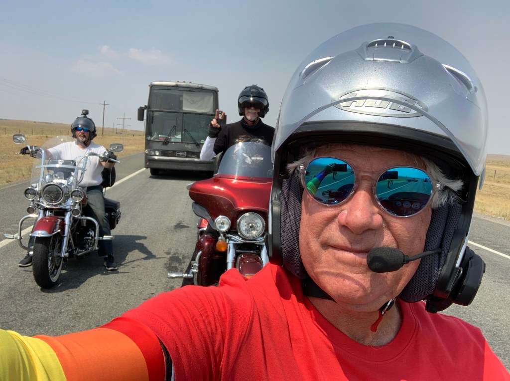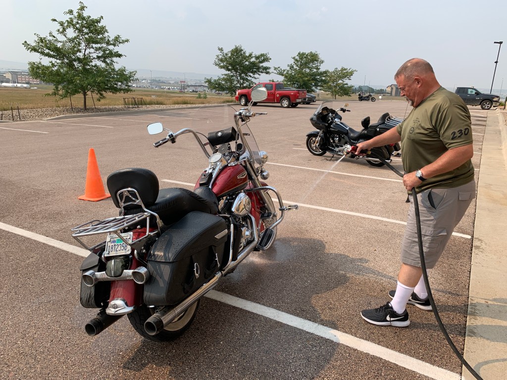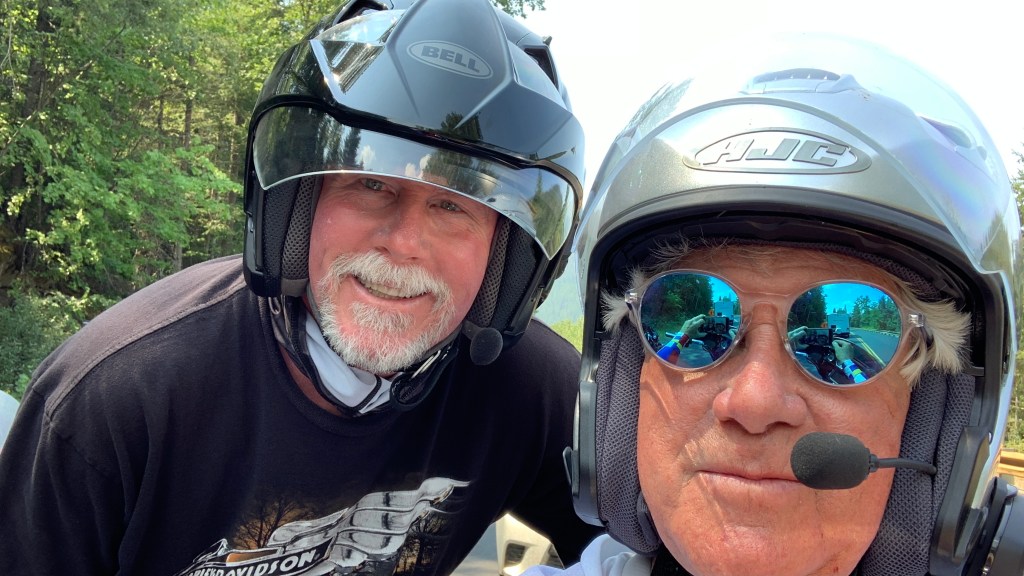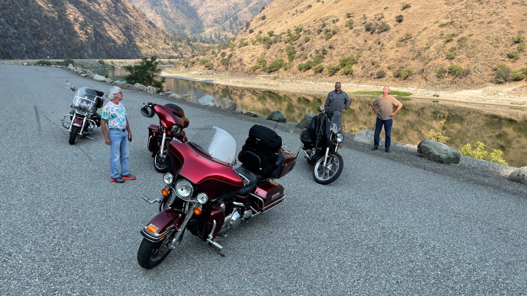 Two Harley studs, ready for three weeks on the road. The bikes won’t be this clean again till we get home.