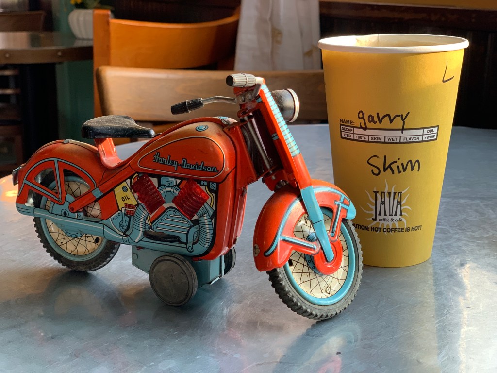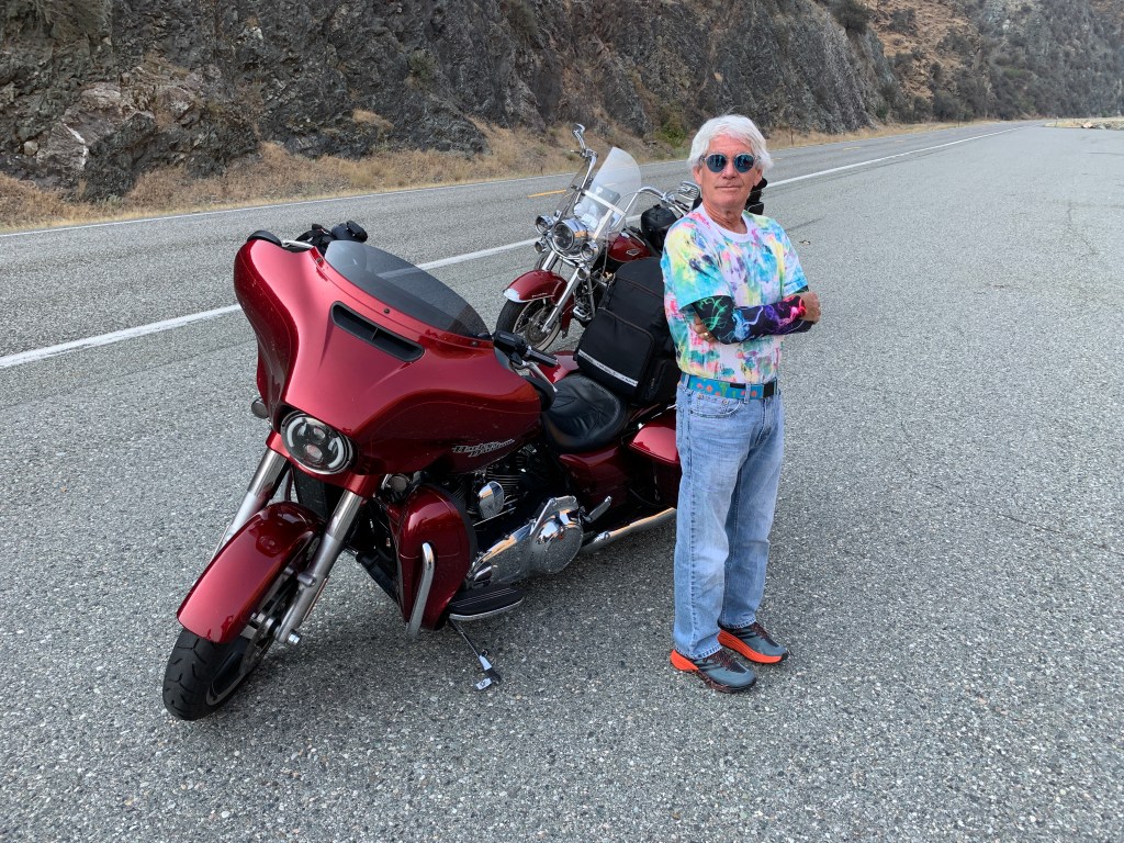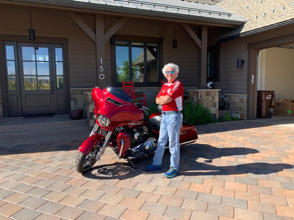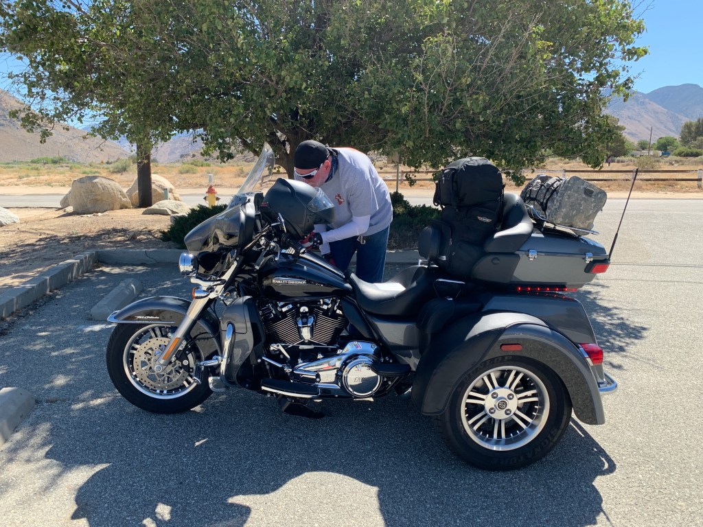 Ever the consummate host, Dave puts my Harley on a lift in his garage and checks my tire pressure. 40 in the rear, 36 in the front. I’m good to go.
