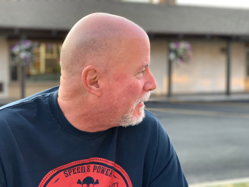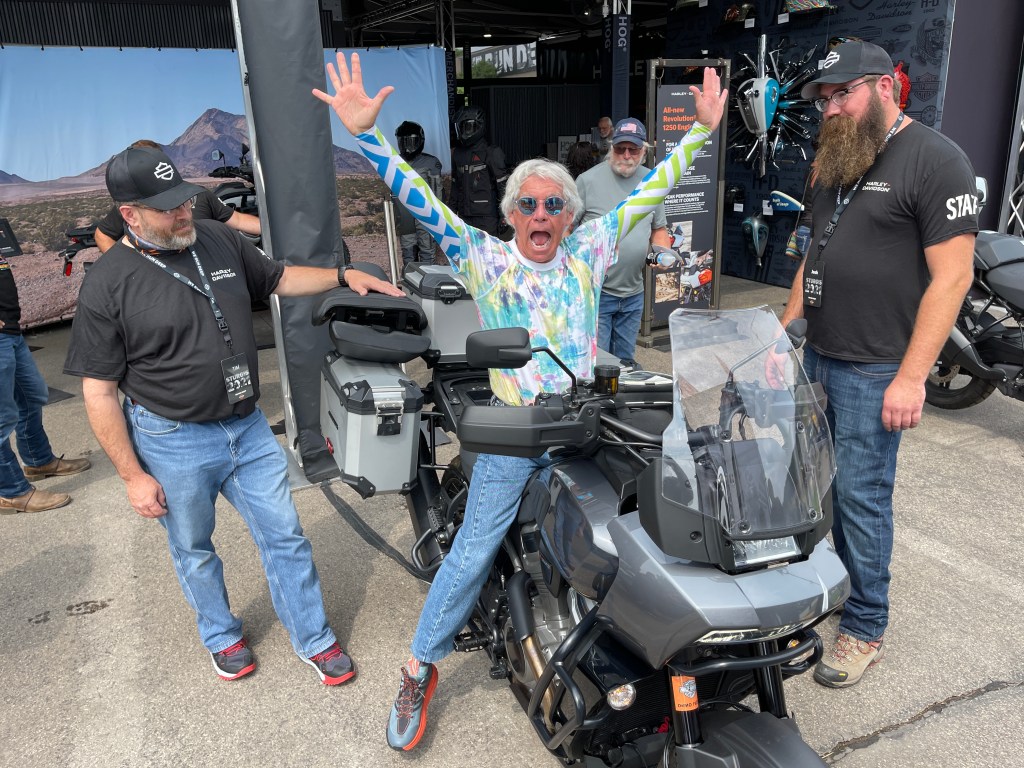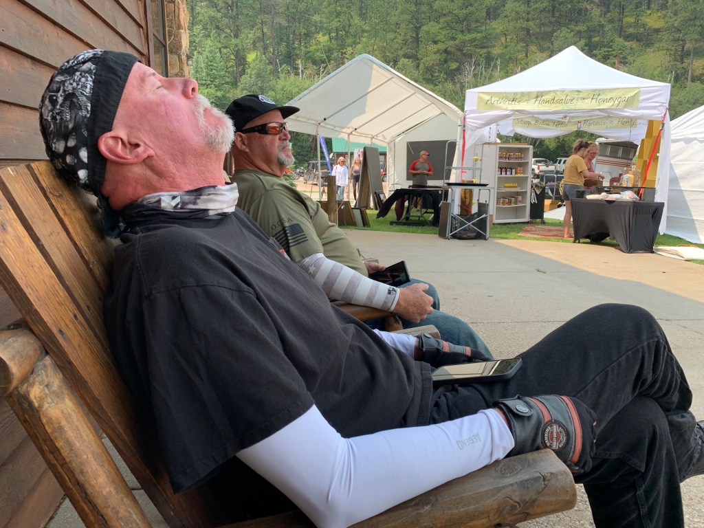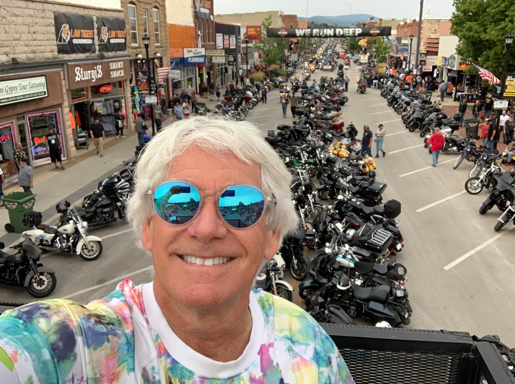 Ever the consummate host, Dave puts my Harley on a lift in his garage and checks my tire pressure. 40 in the rear, 36 in the front. I’m good to go.