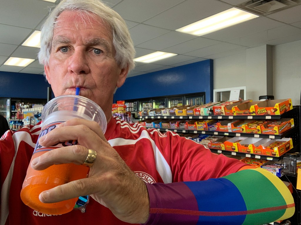 In Cedar City, hydrating at the Shell station.