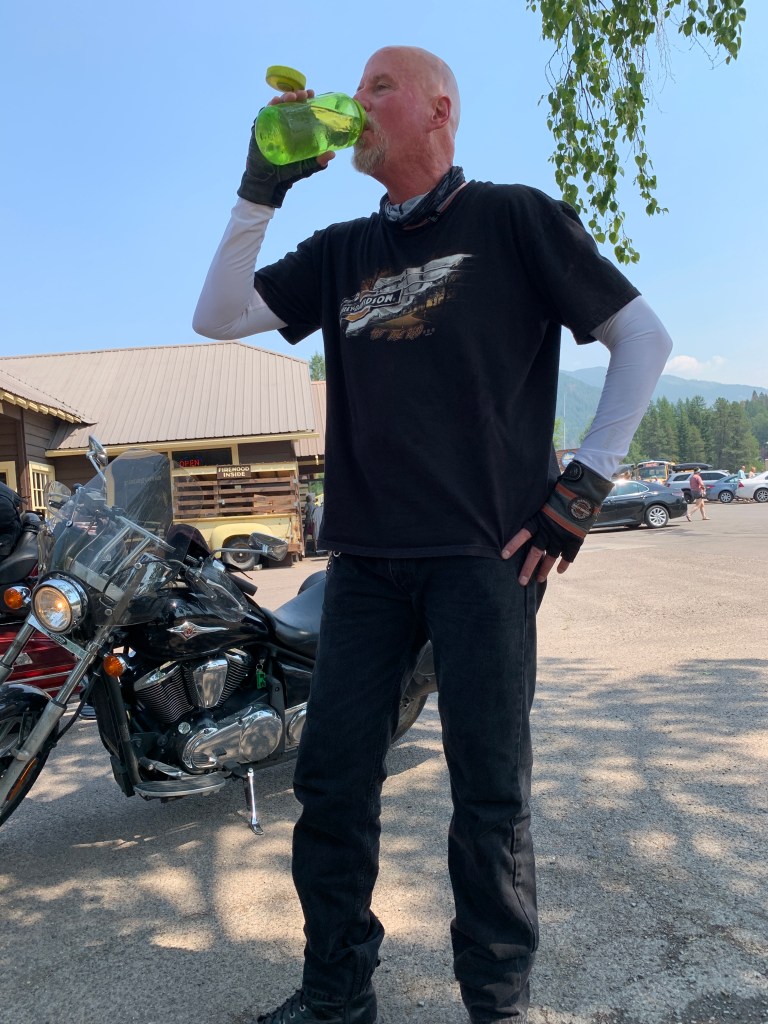 For us, that means gassing up our bikes, and grabbing something to drink. We calling it fueling and cooling.