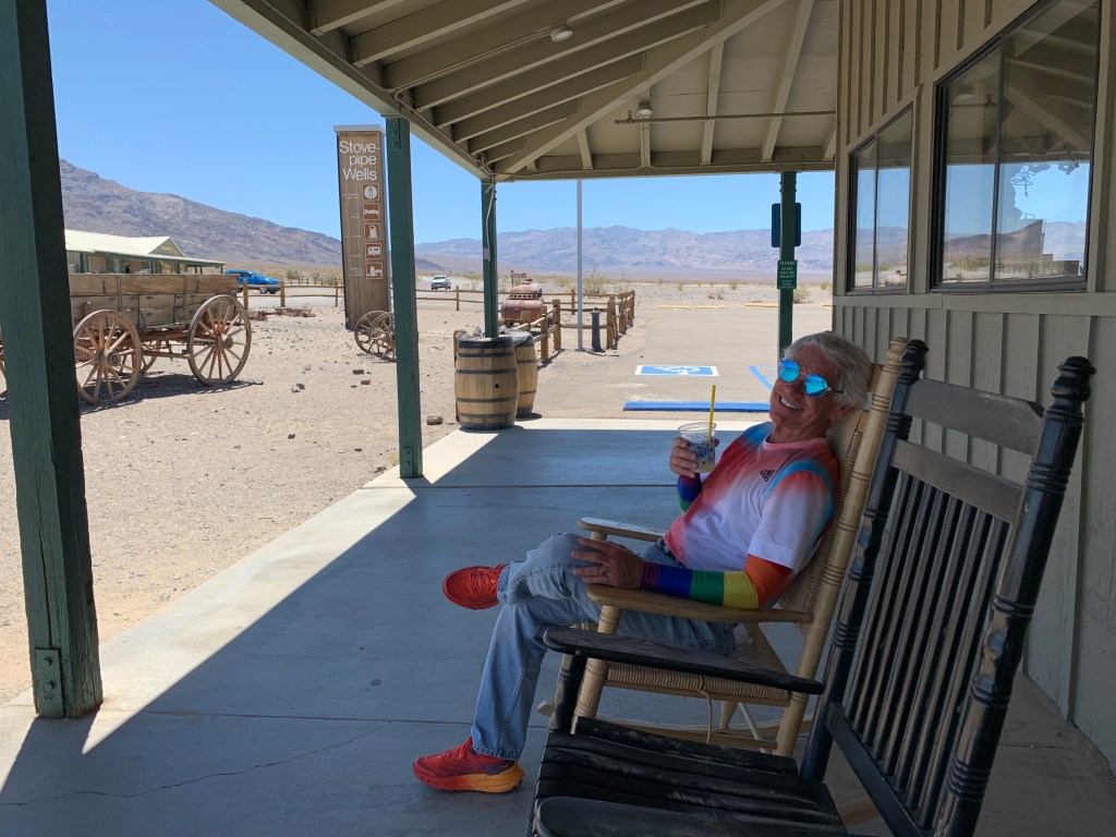 Our next point of interest is Stovepipe Wells. It has a full-service hotel, general store, and an airstrip. We arrive in Stovepipe Wells around noon. It’s a good place to stop for a cold beverage.