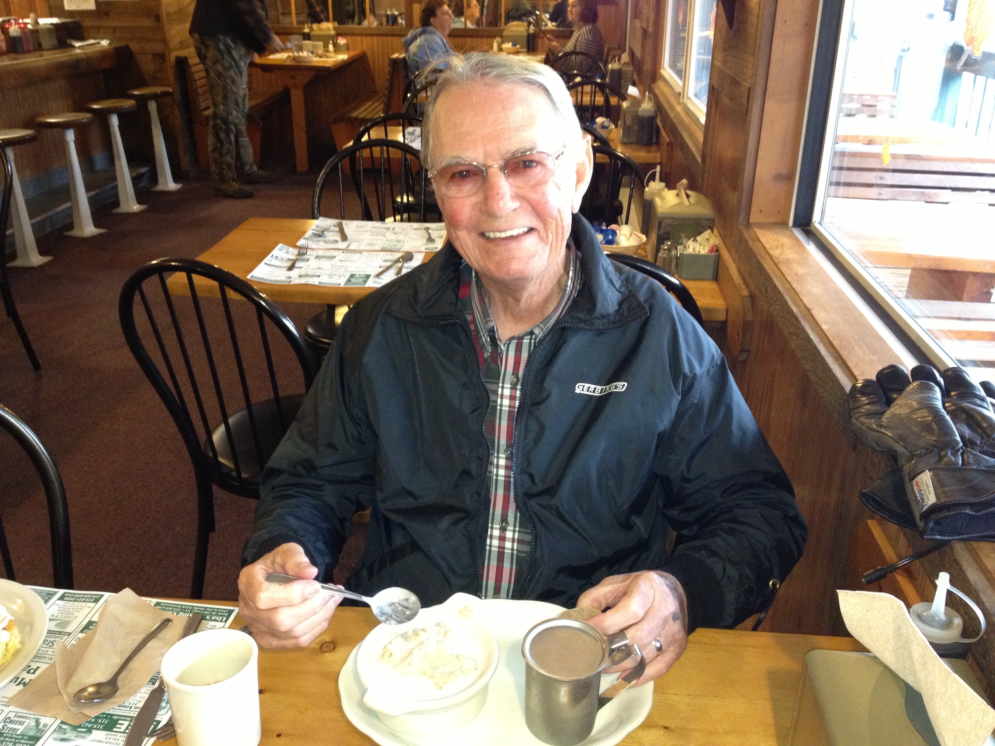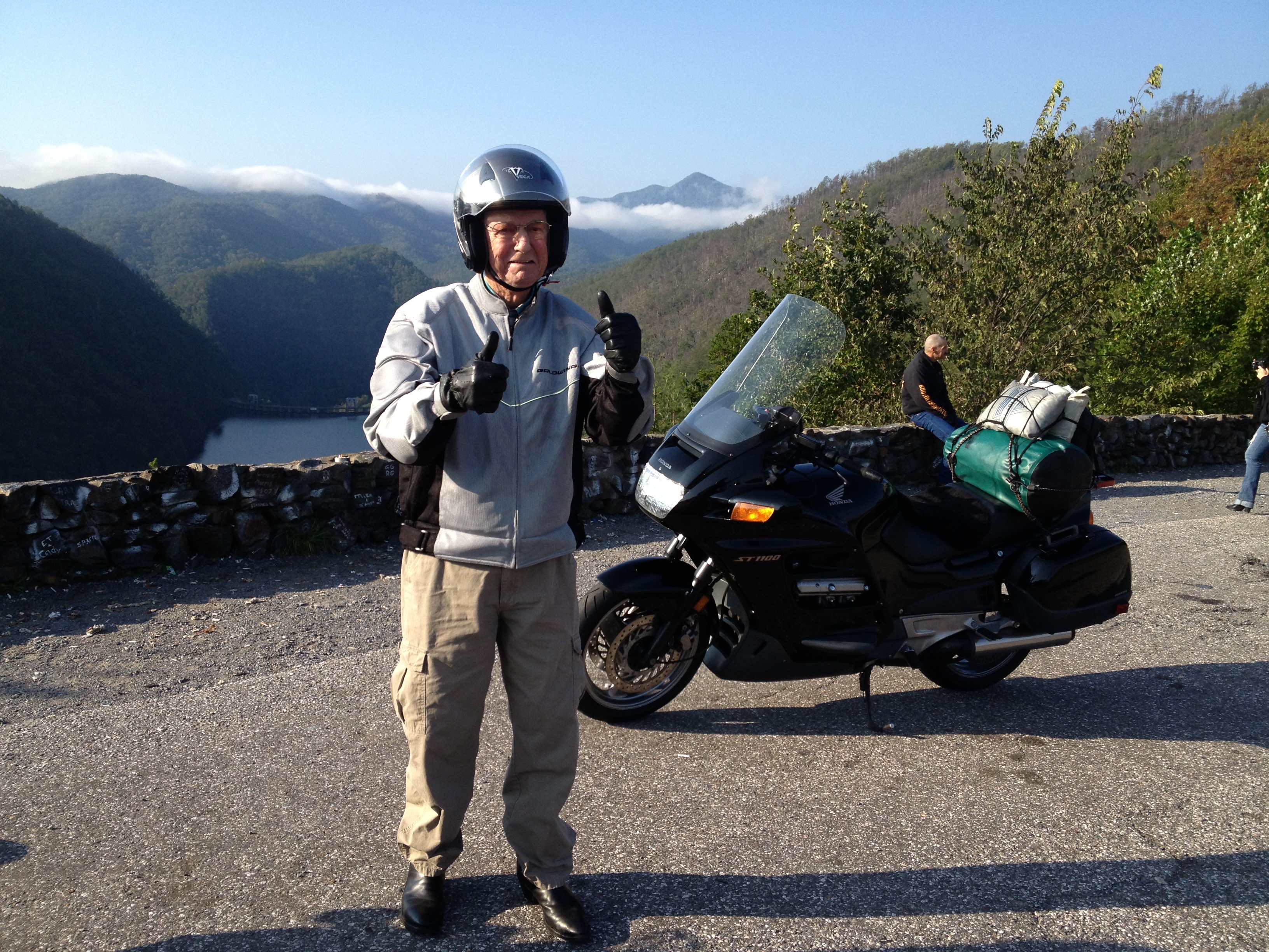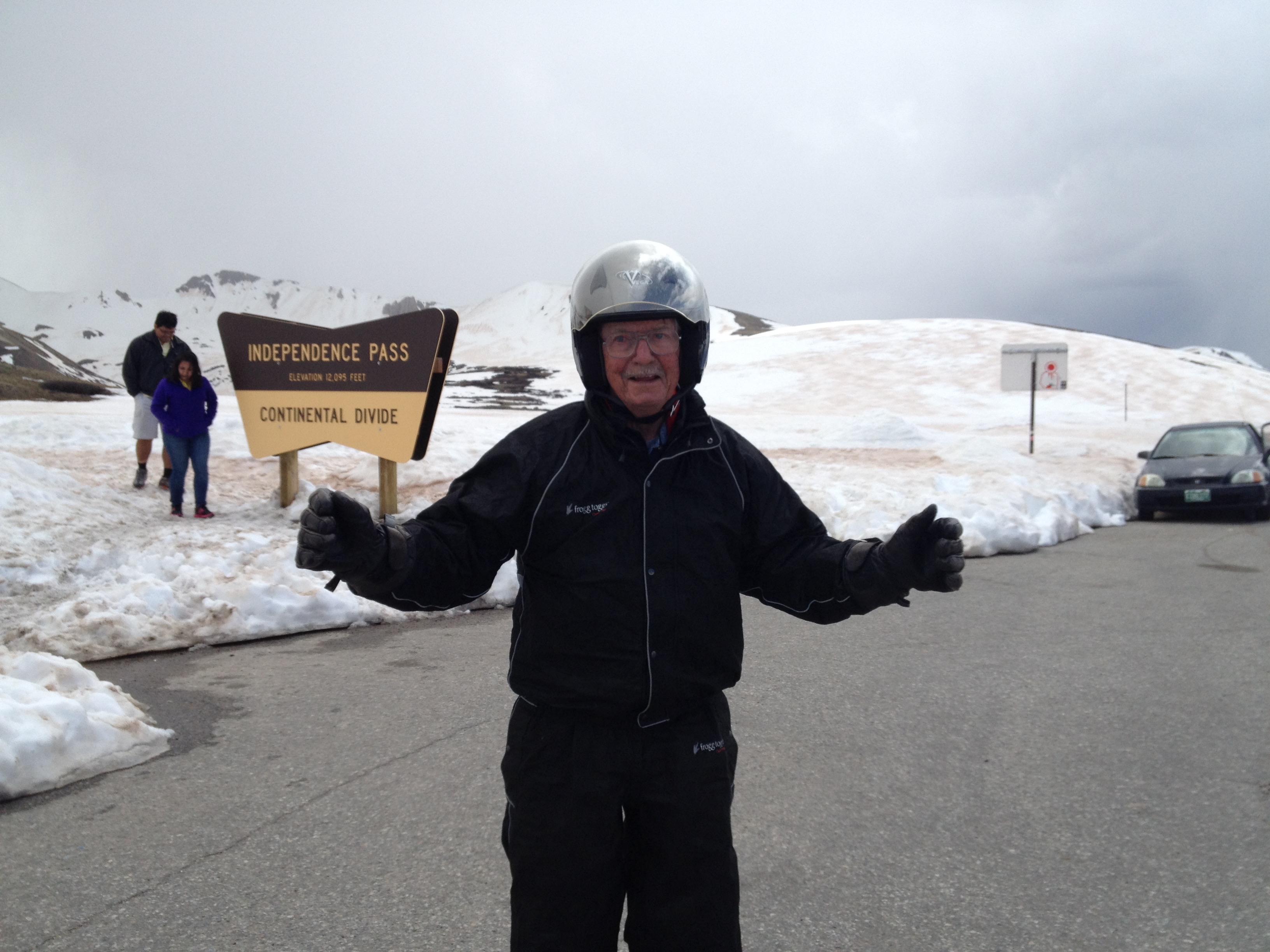 On our 2014 trip, we rode the Colorado Rockies. Ray had a premonition this would be his last major ride – and he wanted to go out in style by riding his favorite road of all time, Trail Ridge Road in Rocky Mountain National Park. He was 83 years old on that trip, and still rode like a kid in his 20s — fearless, but with precision and safety. On that same trip, we rode to the summit of Colorado’s Mount Evans (now called Mount Blue Sky), the highest paved road (14,264 feet) in North America. His smile when we arrived at the peak was unforgettable, a grin from ear-to-ear.